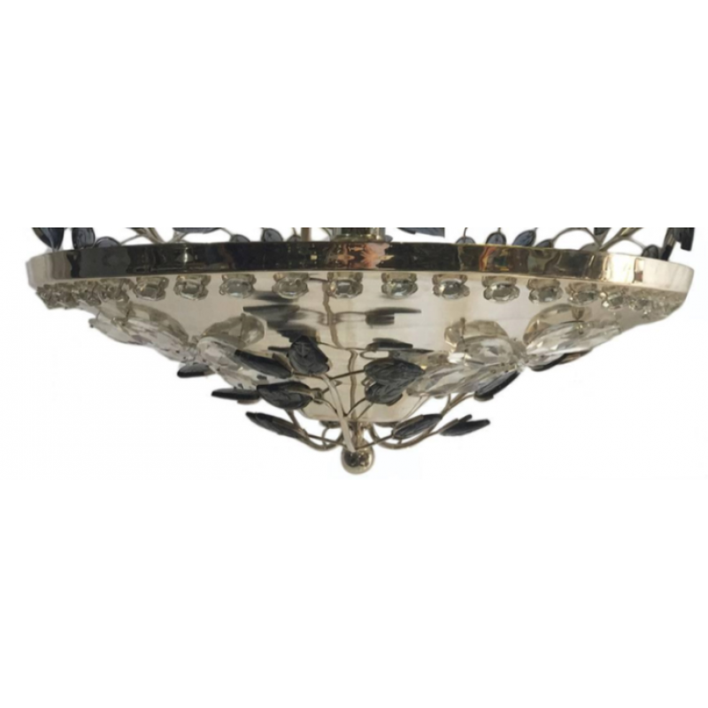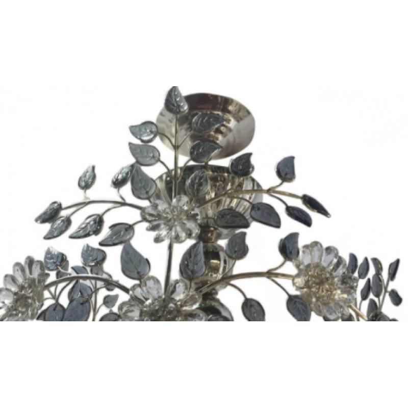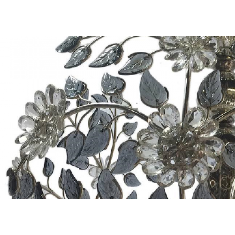 Materials: Silver Plated, colored glass leaves, Crystal flower
