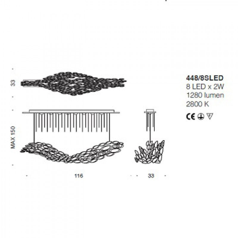Bulbs: 8 LED x 2Watts 1280 Lumen 2800K