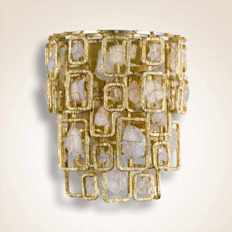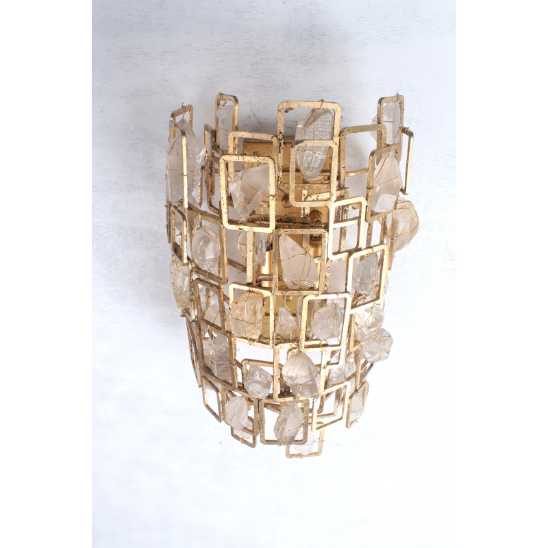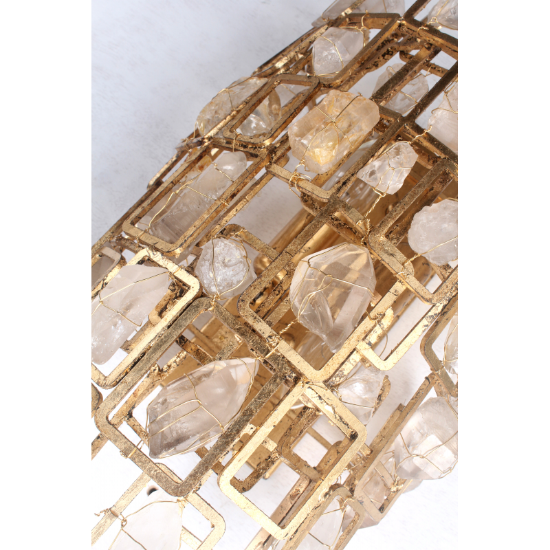 Finish: Gold Leaf, Hand Tied Milky White Rock Crystals (custom finishes also available)