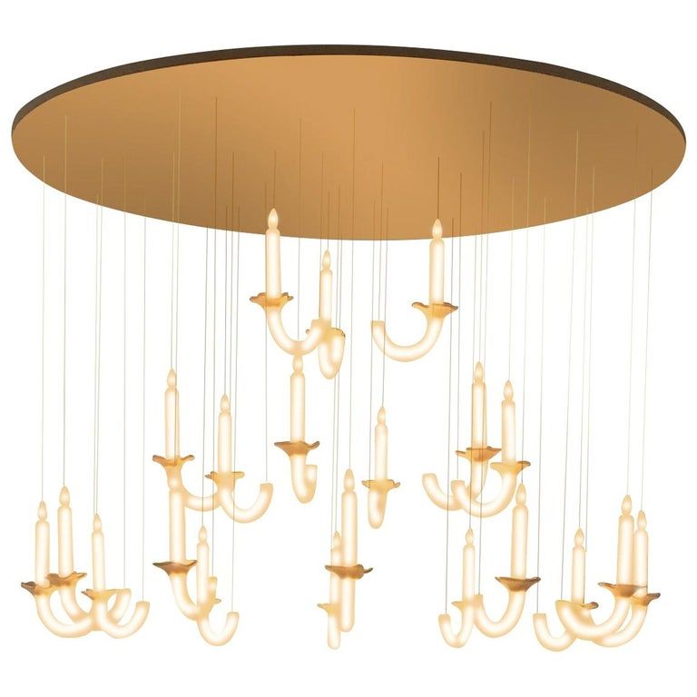 This WERSAILLE candelabra was the result of reclaiming the Porcelain from five traditional chandeliers and re-assembling them into a unified floating grand piece, to grace the entrance to a luxury private residence. The candelabra, a hybrid between a candelabra and chandelier, it appears to gently levitate just above a table surface. Inspired by a traditional candelabra silhouette several hundred wires suspend lavish clusters of vintage porcelain. Isn’t it just beautiful?