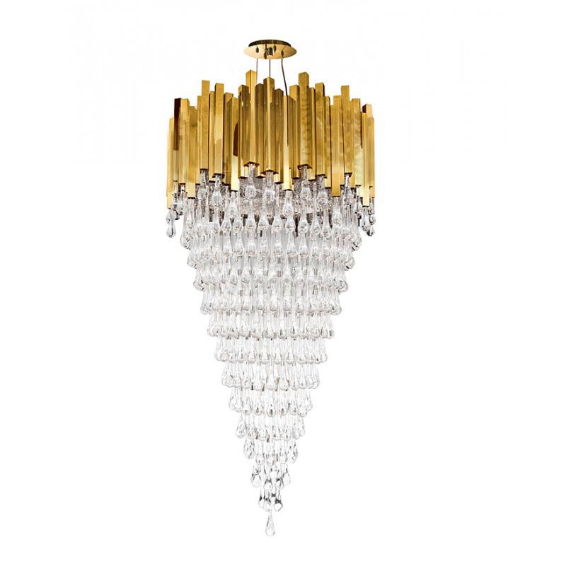Trump Hotel was the inspiration of this elegant item. Made stylishly in classic contemporary design and sculptured by the motif of the exterior, golden windows of this iconic building. This piece promises to sparkle everything around it! Built in brass and sublime tears of crystal, is perfect for a refined living room.