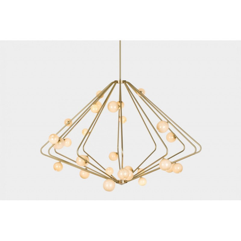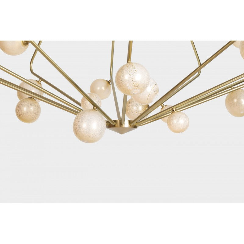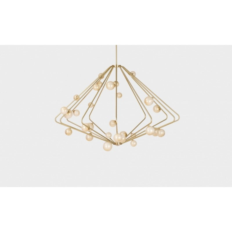 Cherry Bomb chandeliers feature oversized brass armatures and hand-blown mini-globes, recalling underwater cages and traps with small sea bubbles clinging to their surfaces. The Cherry Bomb collection is born with a passion for the spring blossoming Japanese trees that line grand boulevards throughout the world. Alan Mizrahi Lighting Design uses the latest technology, but also incorporates fine materials traditionally handcrafted by local artisans. Each fixture is meant to be fully integrated, spreading a charming and enchanting play of light. Thus creating a constant interaction between the lamp and the surrounding space.