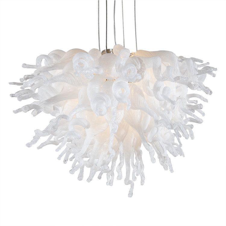 A bouquet of hand-formed curls of glass artfully light the room. Each glass sculpture is available in a panel of color options. In addition, the arms of this piece flow beautifully in a curling form from top to bottom of the frame, spinning and wrapping the piece flawlessly. It's these features and more that make this piece an optimum choice to light your space, but also create a stunning focal point. This fixture pendant was created for an installation exhibition in Germany and the City of Hanover in 1999. The concept has more recently been explored at installations at Times Square Hotel in New York. Amazing lightning effects are able to change any space into some unique place with a magic atmosphere.