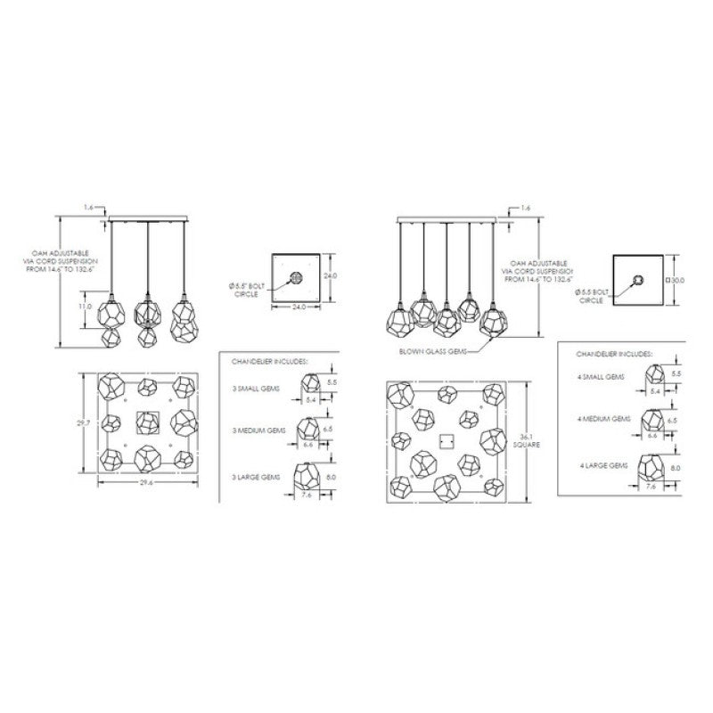 29" Width x 14" to 132" Overall Height (9 Light)