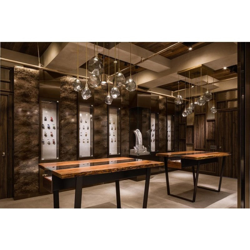 The Gem Square Multi Light Pendant is jewelry for your home. Feature gems of LED-lit hand-blown glass that is meticulously crafted by artisans. The fixture gives a nod to an organic aesthetic that exudes casual sophistication. Each shade takes the place of a traditional bulb and unfolds with striking illumination. The finished look is relaxed, soft, and unique. Each glass shade is a one-of-a-kind artisan creation. Available with Clear, Bronze, Amber, or Smoke hand-blown glass and Gilded Brass, Flat Bronze, Metallic Beige Silver, Satin Nickel, Oil Rubbed Bronze, Heritage Brass, Gunmetal, or Matte Black finish in 9 and 12 light options. Dimmable with a LED compatible dimmer.