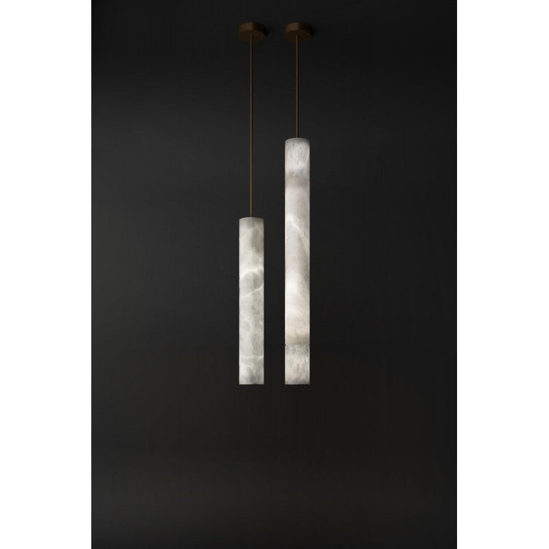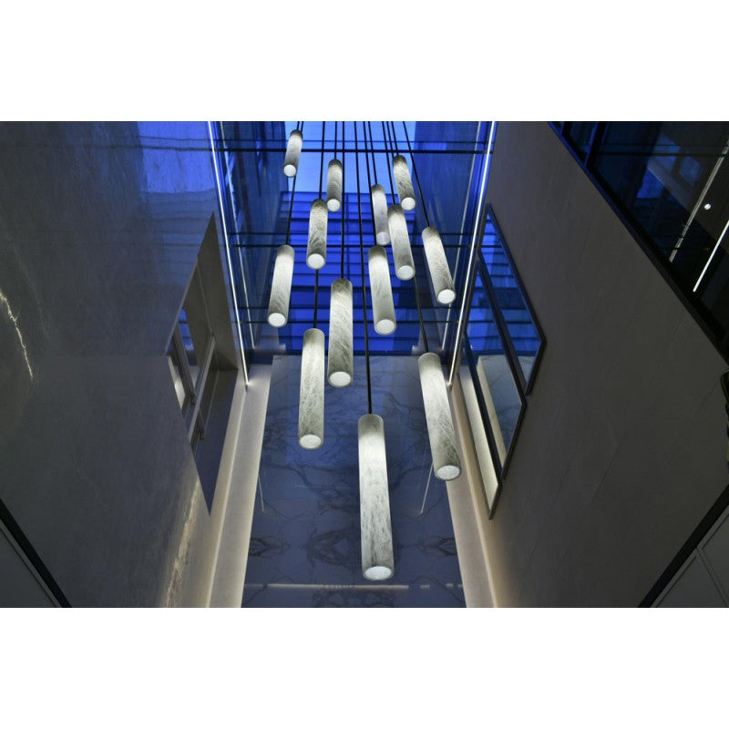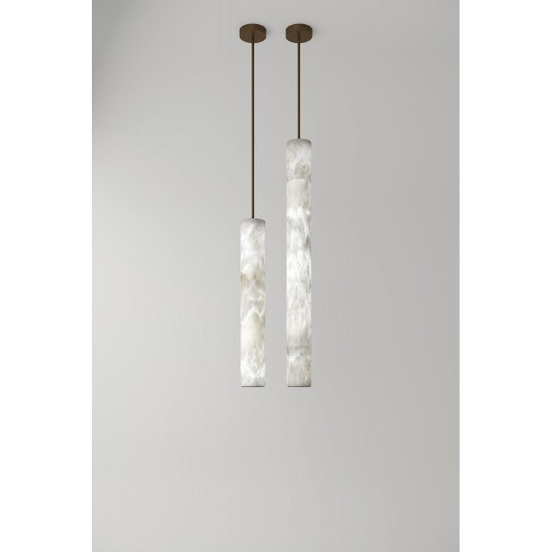 SUMATRA pendant plays with pure verticality and offers options for single suspension of vast composition. It is the cylinder of all possibilities: a single suspension, it seems to firmly float in the air. It can also be combined with other models to create multiple compositions. Add dramatic depth above a table or within a staircase by adjusting its height. A collection bestseller, this pendant is also available as a sconce and a horizontal hanging lamp. Alan Mizrahi Lighting designs create a wide array of custom designed lighting fixtures and furniture according to the exact proportions, dimensions and specifications, to enhance the beauty of their living or working space.