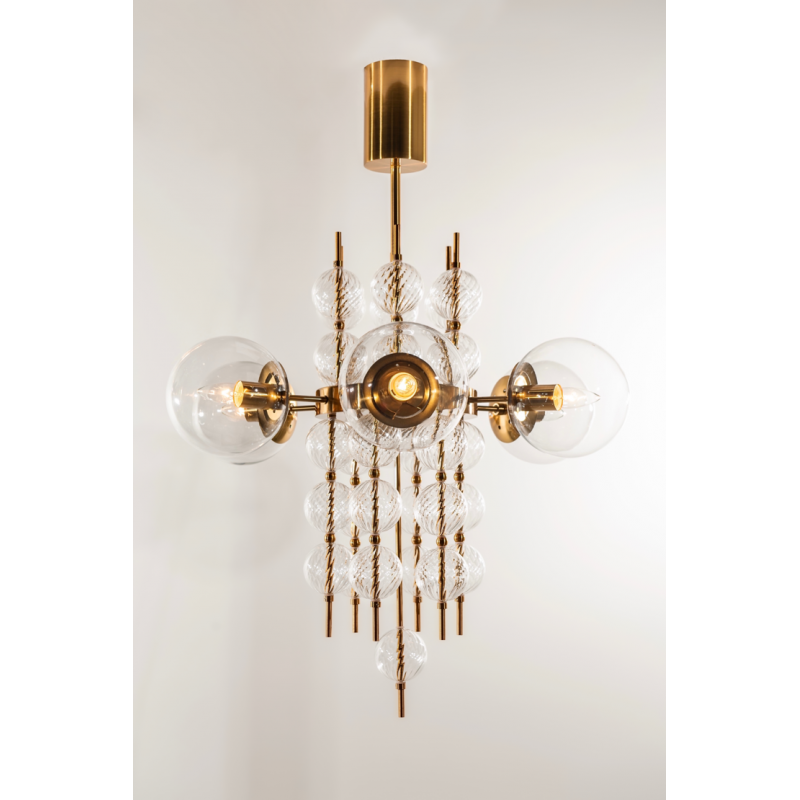 The Madison Murano glass chandelier is one part glitz and one part charm, making her a luxury light fixture centerpiece that will dazzle any space. Her unique shape is highlighted by blown Murano glass details. Accented by her polished jewelry like brass metal finishes. At Alan Mizrahi Lighting Design, we supply and manufacturer many highly sought after designer pieces, so if there is any designer fixture you are intrigued by or have your heart set on, let us know and we'll let you know if we can make it.