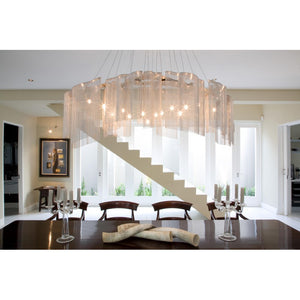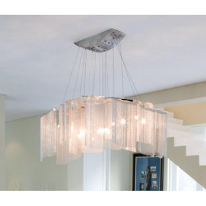 An elongated organic 'Tree shaped' chandelier inspired by trees on architectural drawings. Illuminated by G4 Halogen lamps within 24 suspended glass balls. Suitable for a linear space or over a long table.