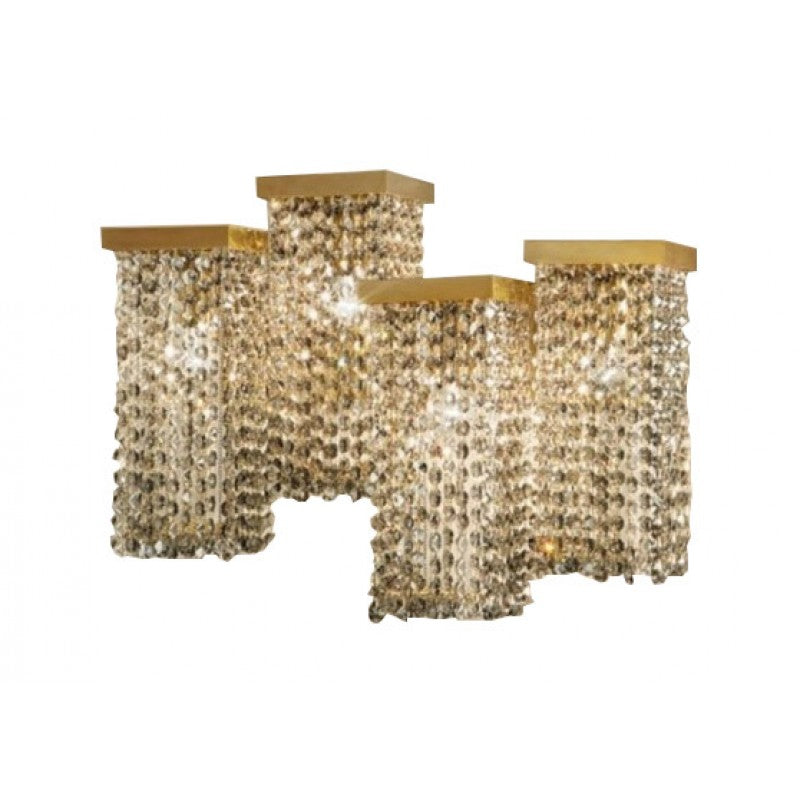 Countless octagonal crystals compose this beautiful and unique light fixture. Beaded strands are carefully crafted of the highest quality materials and tightly woven so that the light filters though to cast a beautiful shadow. Customize your chandelier by selecting from a fabulous array of glass in different color options. This stunning chandelier is perfect for your beach house or coastal home, and will look stunning in your dining room, entryway, bathroom, or bedroom, a designer favorite!