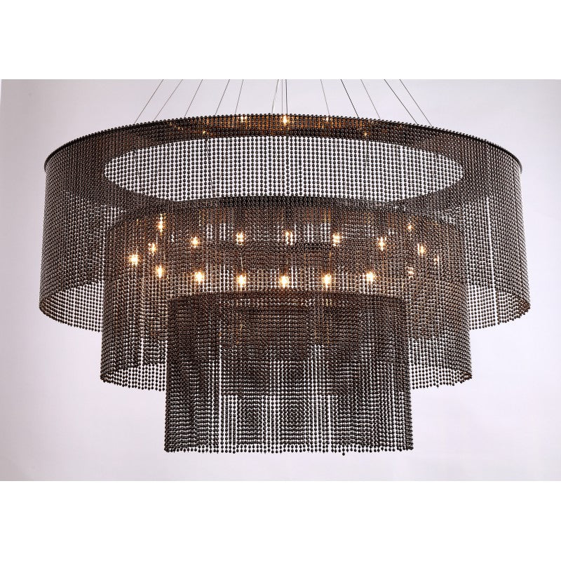 Collection: Modern Size: shade size: (62" x 24") Width x 20" Height (Custom sizes also available) Shape: Elliptical Frame Finish: Chrome Plated (Different frame finish options also available at no additional cost) Materials: stainless steel Weight: 55 lbs Extension: Adjustable cables for a customizable length up to 12 ft Bulbs: 18 Light 18-40 Watt 110 V USA/220 V Europe -LED (included) Assembly: Fully assembled Dimmer Switch Compatible: Yes Shipping: Free Door-To- Door Shipping Worldwide Rush Order: 4-6 Weeks; 15% added to total Regular Lead Time: 6-10 Weeks Warranty: 5 Years Full Coverage (includes parts replacement)